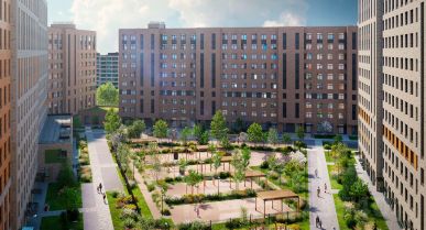 - На территории комплекса спроектированы игровые площадки для детей разных возрастов, спортивные и лаундж-зоны, а также коворкинг