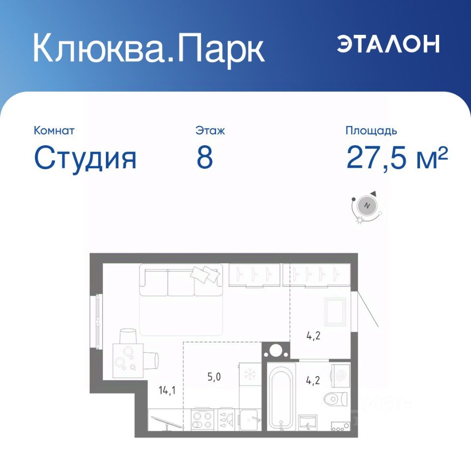Продается студия без отделки в ЖК "Клюква.Парк".