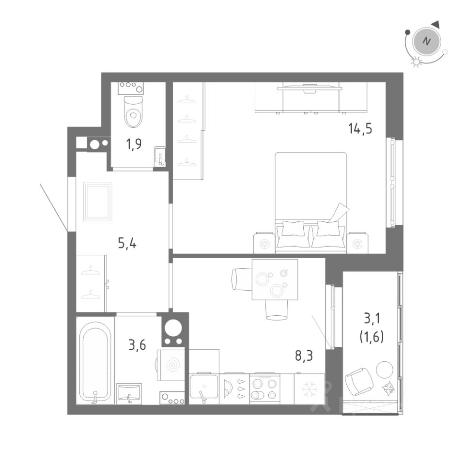 Продается 1-к квартира без отделки в ЖК "Клюква.Парк".