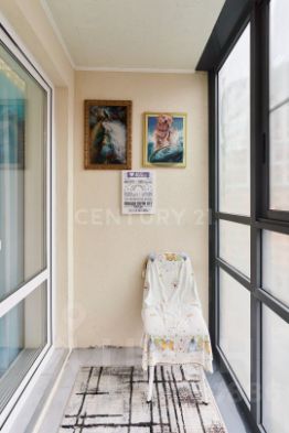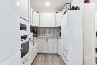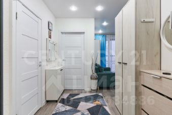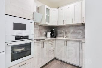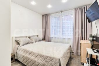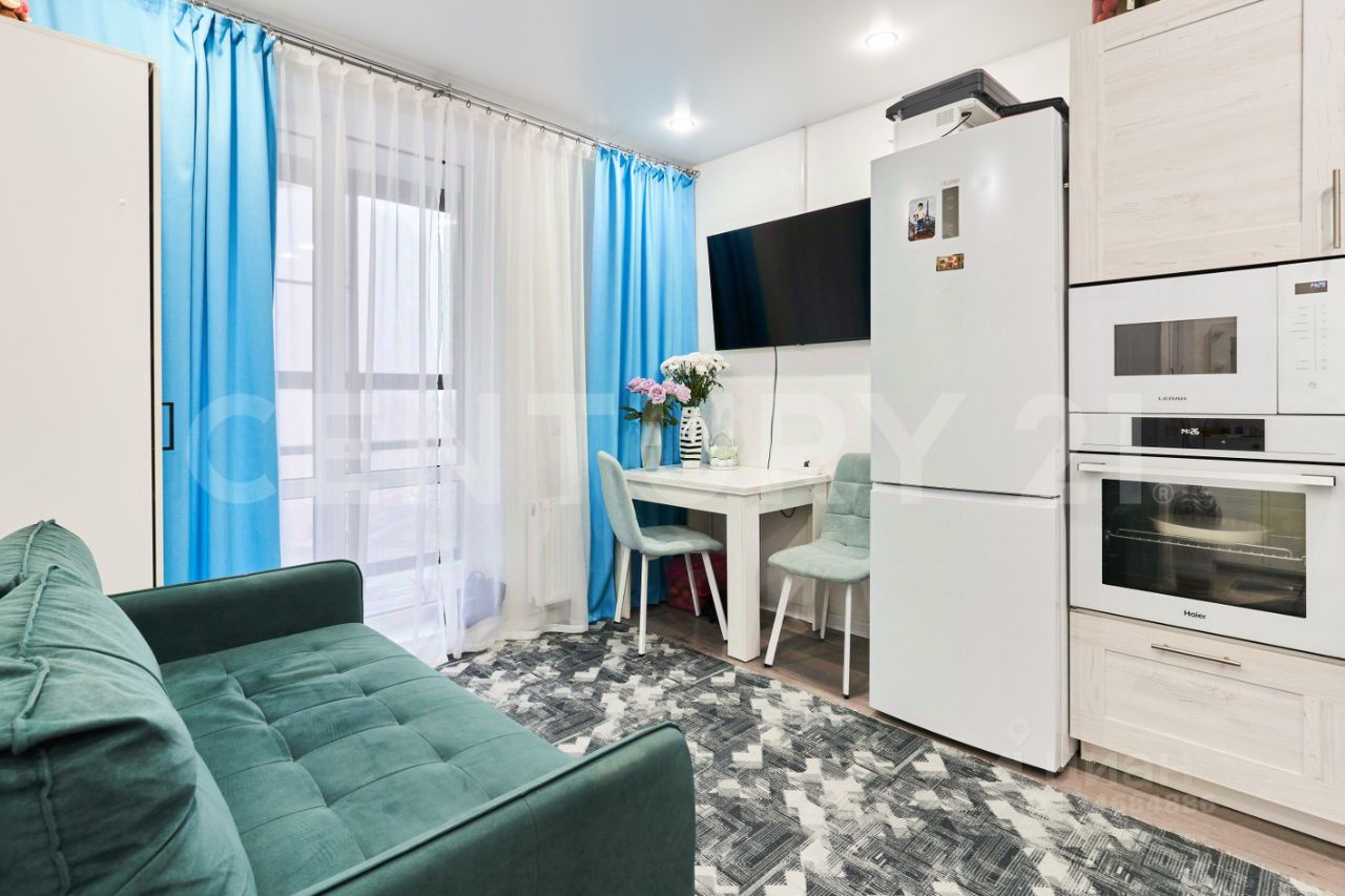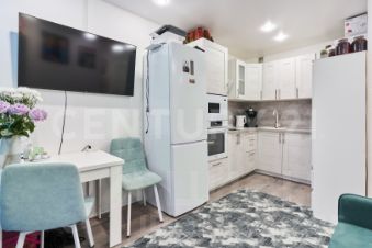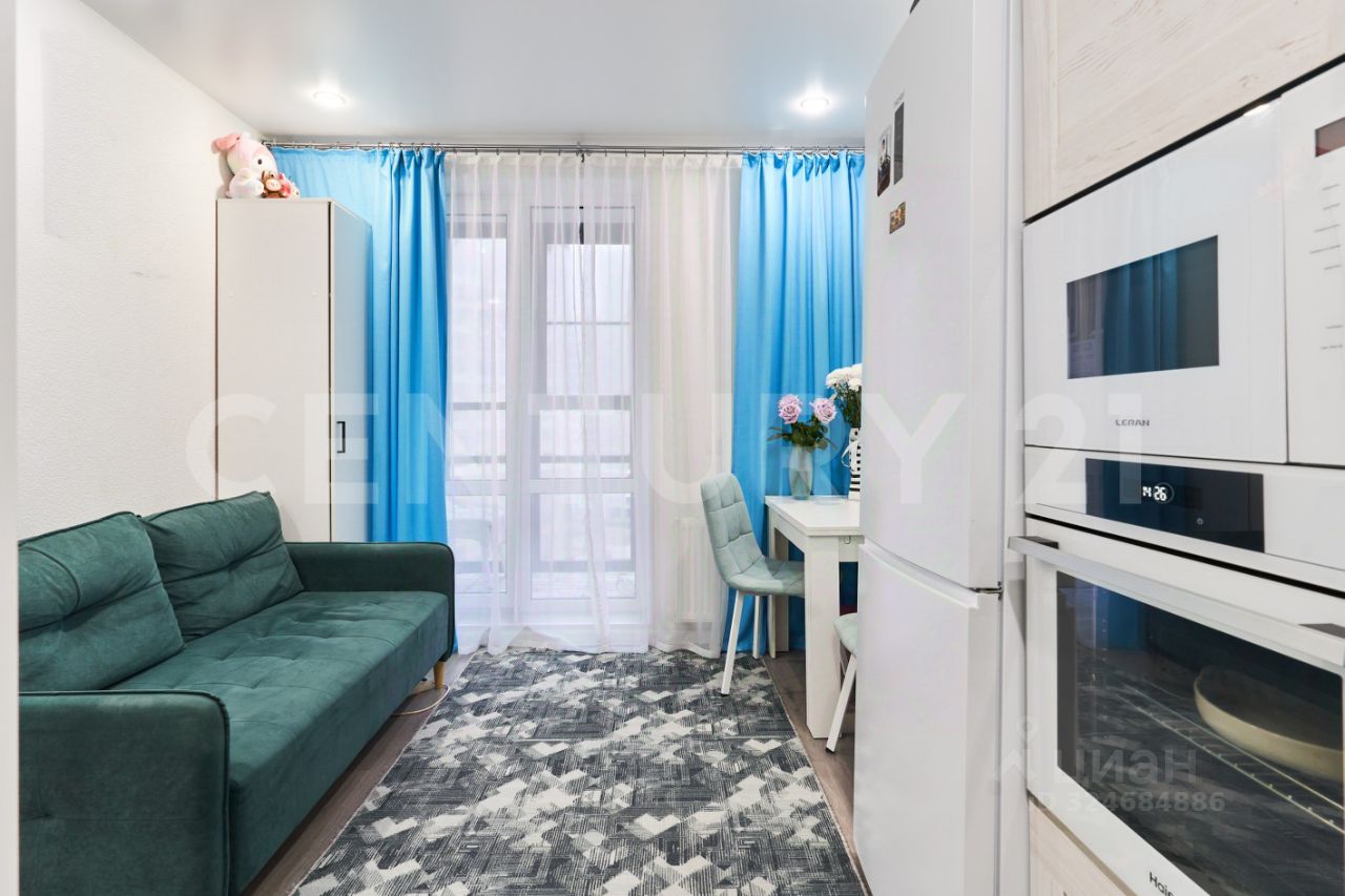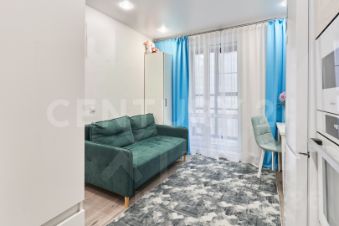 В квартире ремонт от застройщика, что придаёт ей стильный и современный вид. Пространство организовано максимально функционально. В комнате и на кухне установлена качественная мебель и необходимая техника — все, что нужно для комфортной жизни. Собственники оставляют всю мебель и технику новым собственникам, за исключением пары мелочей. Совмещённый санузел оформлен в светлых тонах, вся сантехника и стиральная машина новые. В кухне установлен современный кухонный гарнитур со встроенной бытовой техникой. Организована зона отдыха с диваном, откуда можно пройти на балкон с панорамным остеклением.