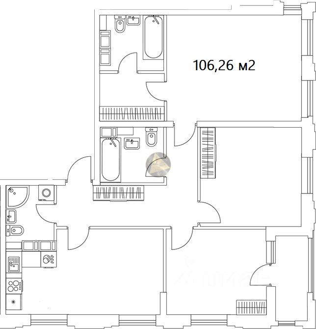 - Общая площадь квартиры 106,26 м2