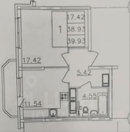 В продаже просторная 1- комнатная квартира 38,7 метра.