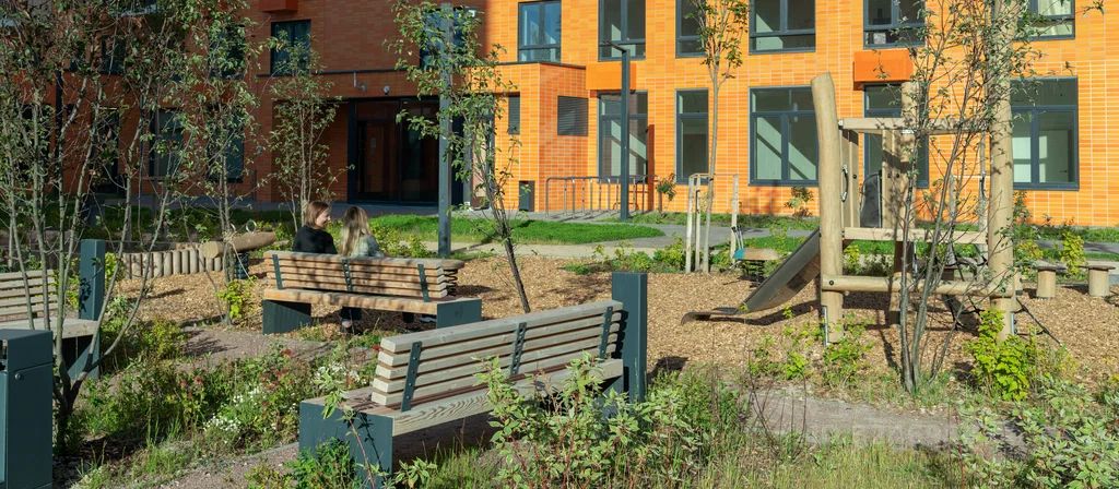 Это лучший ЖК на правой стороне Девяткинло — по качеству дворов, отделке, зонам отдыха и общей архитектуре.