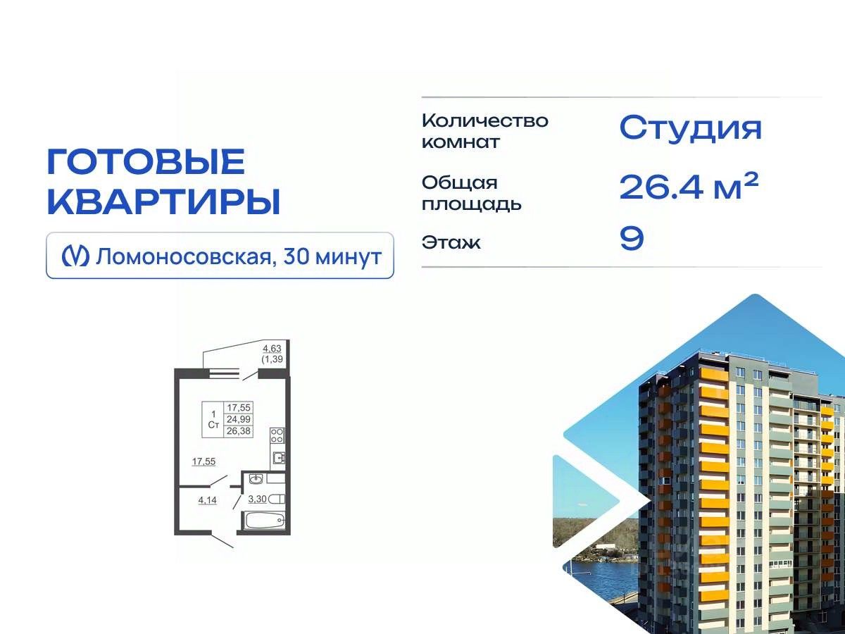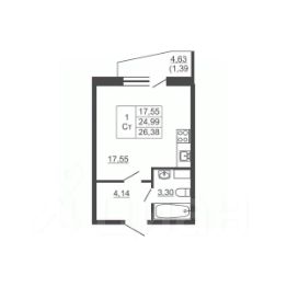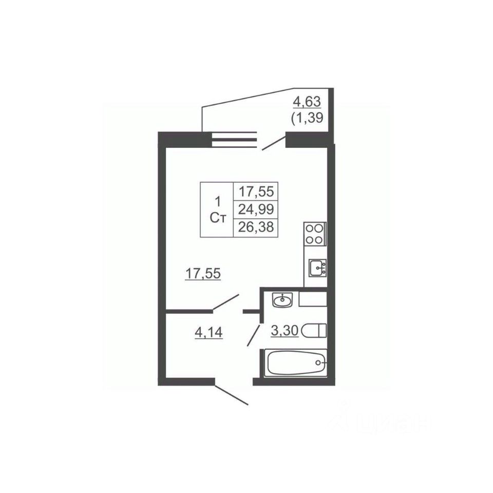 Продается квартира студия в жилом комплексе "Тандем" от ГК СТОУН нa 9 этаже. Общaя площадь cоcтaвляeт 26.38 кв. м.