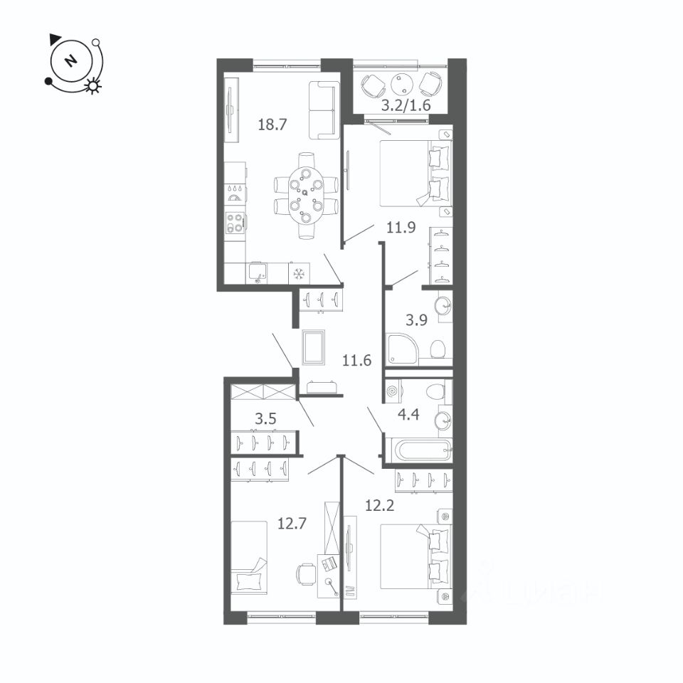 Продаётся 3-комнатная квартира в сданном доме (Корпус 3 (В)), срок сдачи: IV-кв. 2025, общей площадью 80.7 кв.м., на 4 этаже. Новый жилой комплекс "Пулковский дом" от застройщика "Группа Эталон" расположен по адресу: Россия, Санкт-Петербург, Пушкинский район, посёлок Шушары, территория Пулковское