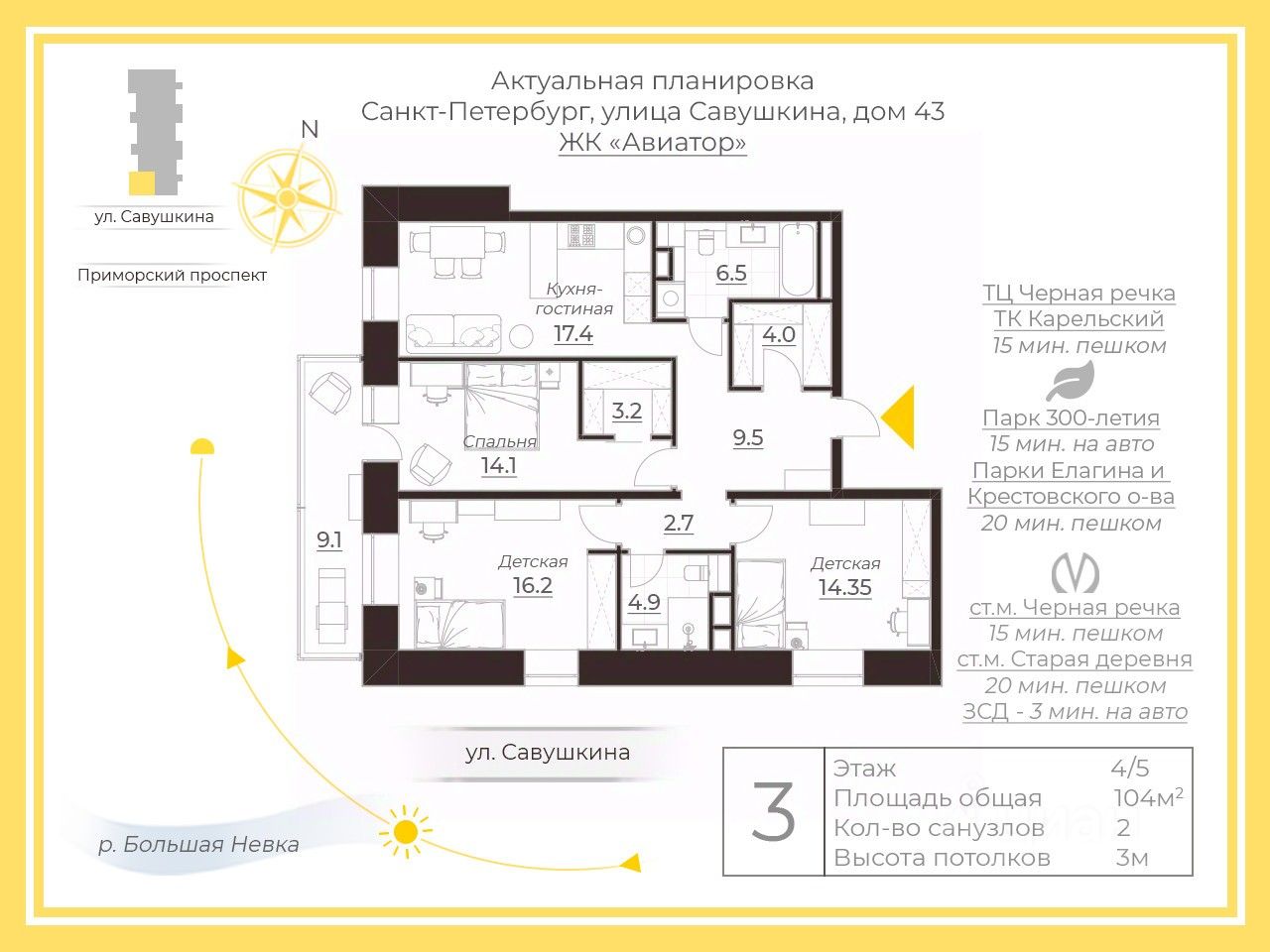 Арт. 127288614 Семейная квартира в малоэтажном клубном доме бизнес-класса рядом с Елагиным островом и Центральным парком города, набережной Большой Невки, в пешей доступности от двух станций метро. Близость к центру Санкт-Петербурга и общественно-деловому комплексу Лахта-Центр.