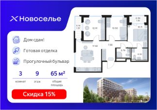Продается 3-комн. квартира на 9-м этаже в строящемся проекте комфорт-класса Новоселье. Общая площадь лота составляет 66,00 кв. м, из которых 31,52 кв. м отведено под жилую и 17,32 кв. м под кухонную зону. Номер квартиры - 528
