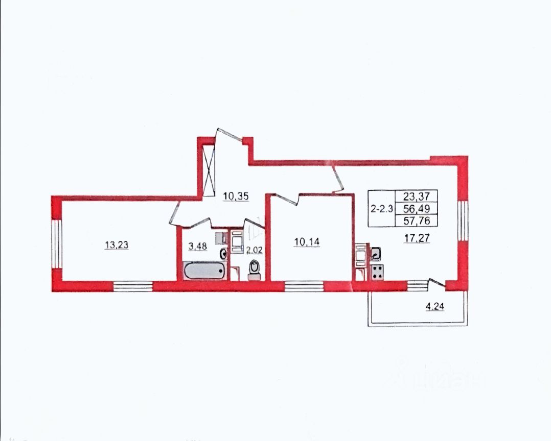 • Комнаты изолированные: 13,23 м² и 10,14 м²