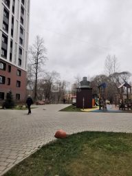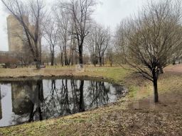 Уютный парк начинается сразу за воротами жилого комплекса.