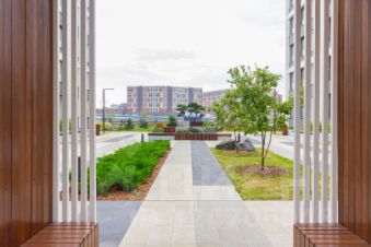 Для удобства жильцов в комплексе имеются охраняемая территория, подземная парковка, спортивные залы и детские площадки.