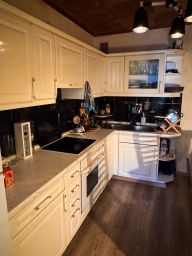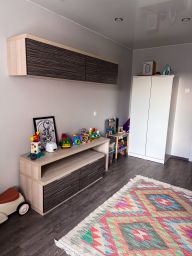 Покупателю останется кухонный гарнитур со всей техникой и часть мебели: вместительный шкаф в спальне, система хранения в детской.