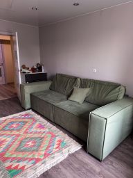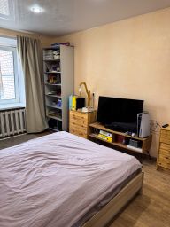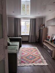 Квартира двухсторонняя, светлая, теплая, с удобной планировкой. Общая площадь 53 кв.м., комнаты изолированные, правильной формы: 9 кв.м. кухня, 14 м.кв. спальня и 15 м.кв. детская. В прихожей есть вместительная кладовка, большая застекленная лоджия, а также часть общего коридора отгорожена железной дверью. Санузел раздельный. Дом кирпичный 1994 года. Слышимости соседей нет.
