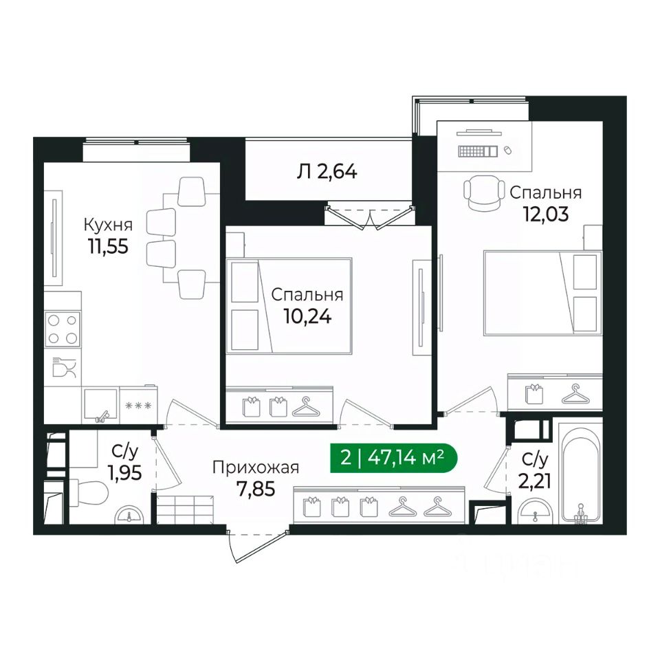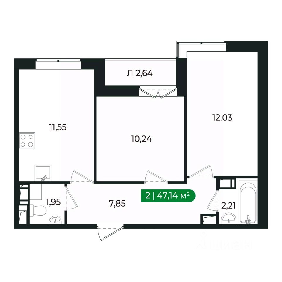 Напрямую продаётся 2 комнатная квартира 200 на 7 этаже (из 8) общей площадью 47,14 м2 в III очереди в жилом комплексе Сертолово Парк от застройщика ГК Алгоритм.