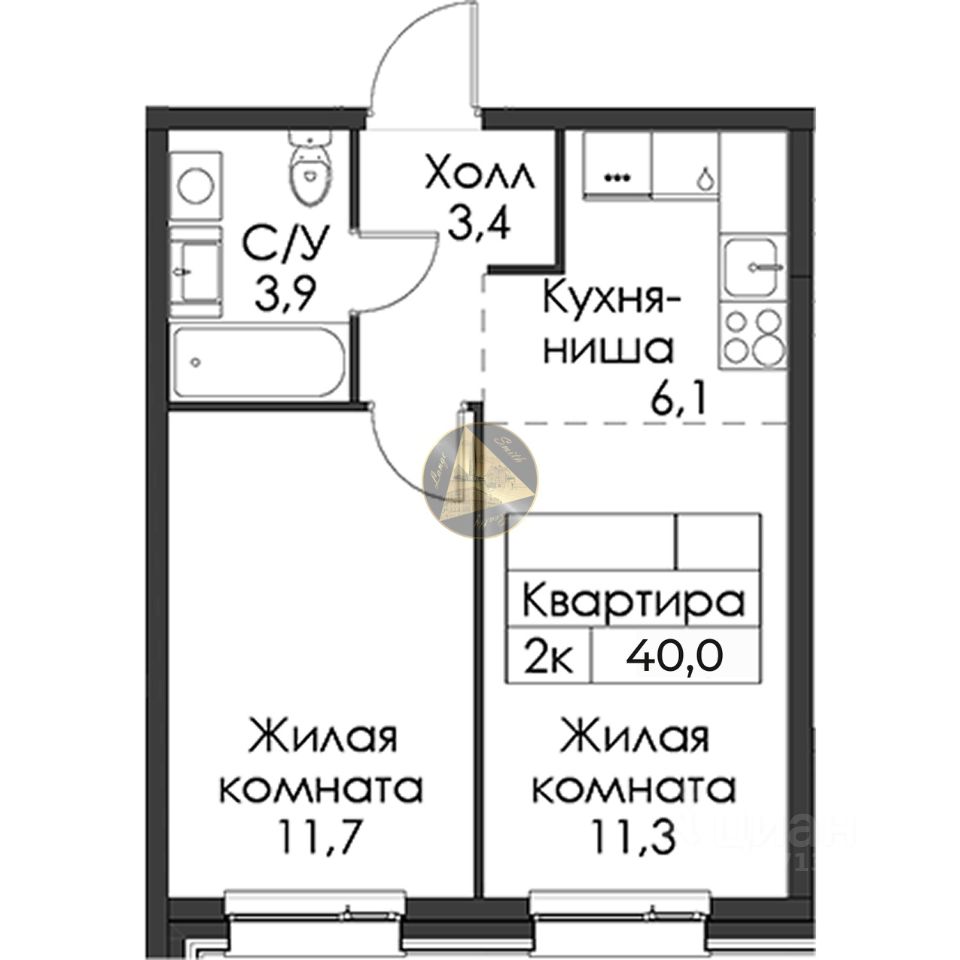 - Общая площадь квартиры 40.0 м2