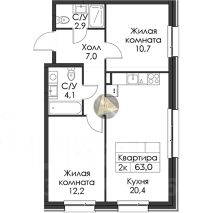 - 2 совмещённых санузла 4.1 и 2.9 м2