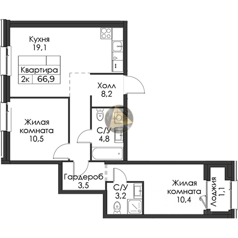 - Общая площадь квартиры 66.9 м2