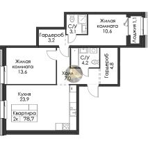 - Мастер спальня 10.6 м2 с гардеробной 3.2 м2 и отдельным санузлом 3.1 м2