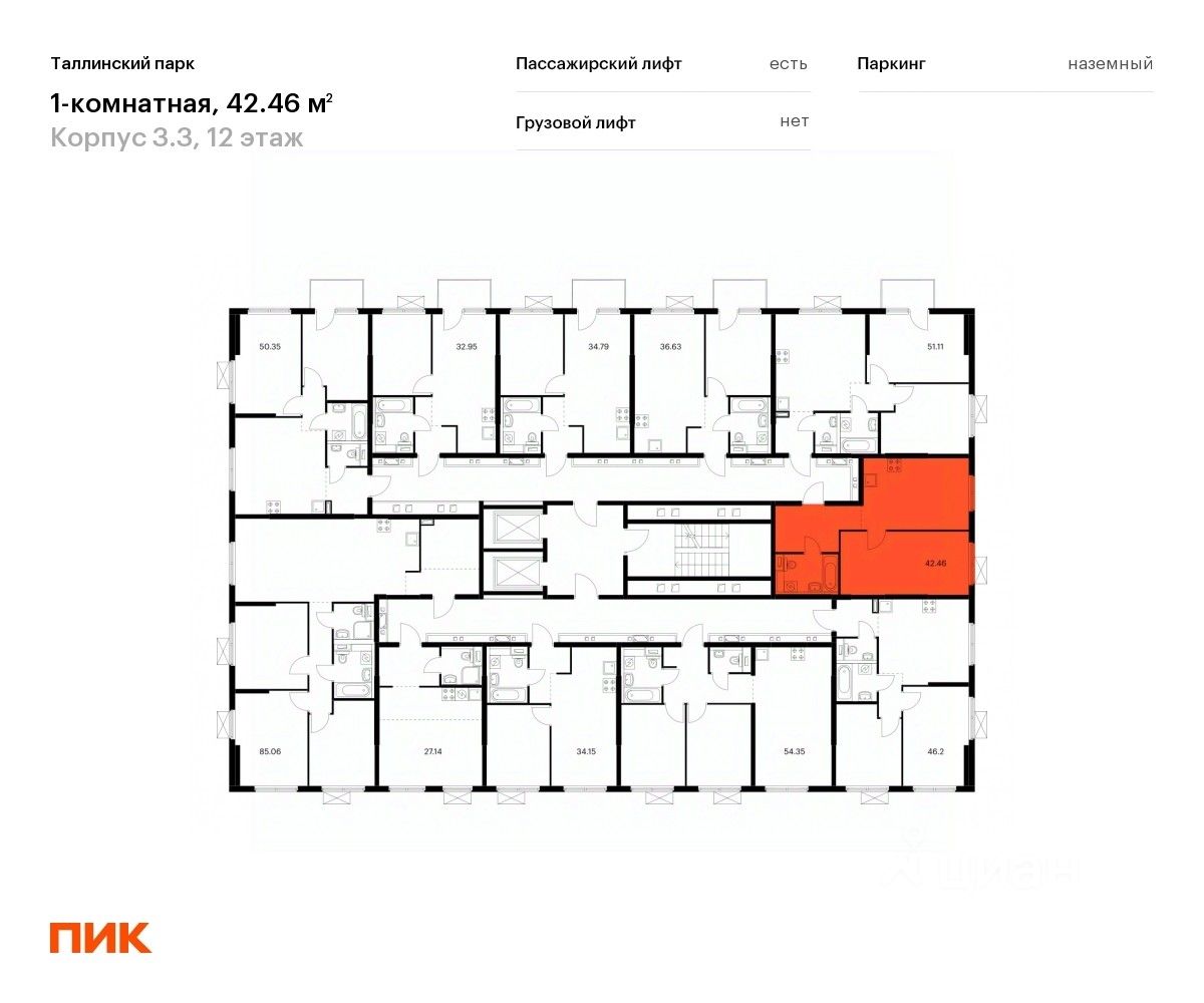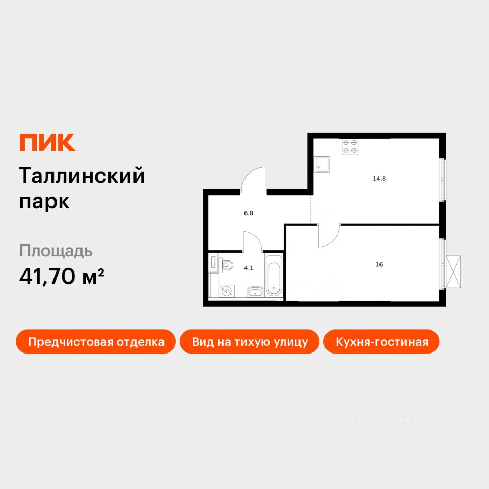 Продаётся 1-комн. квартира площадью 41,7 кв.м на 12 этаже 12 этажного дома (Корпус 3.3, Секция 1) проекта ПИК Таллинский парк. Светлый просторный подъезд на уровне земли, функциональная планировка, большие окна, предчистовая отделка.