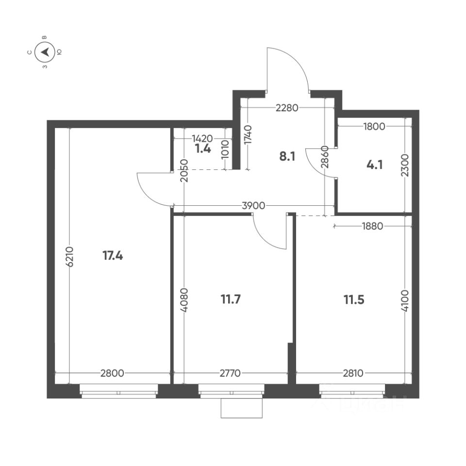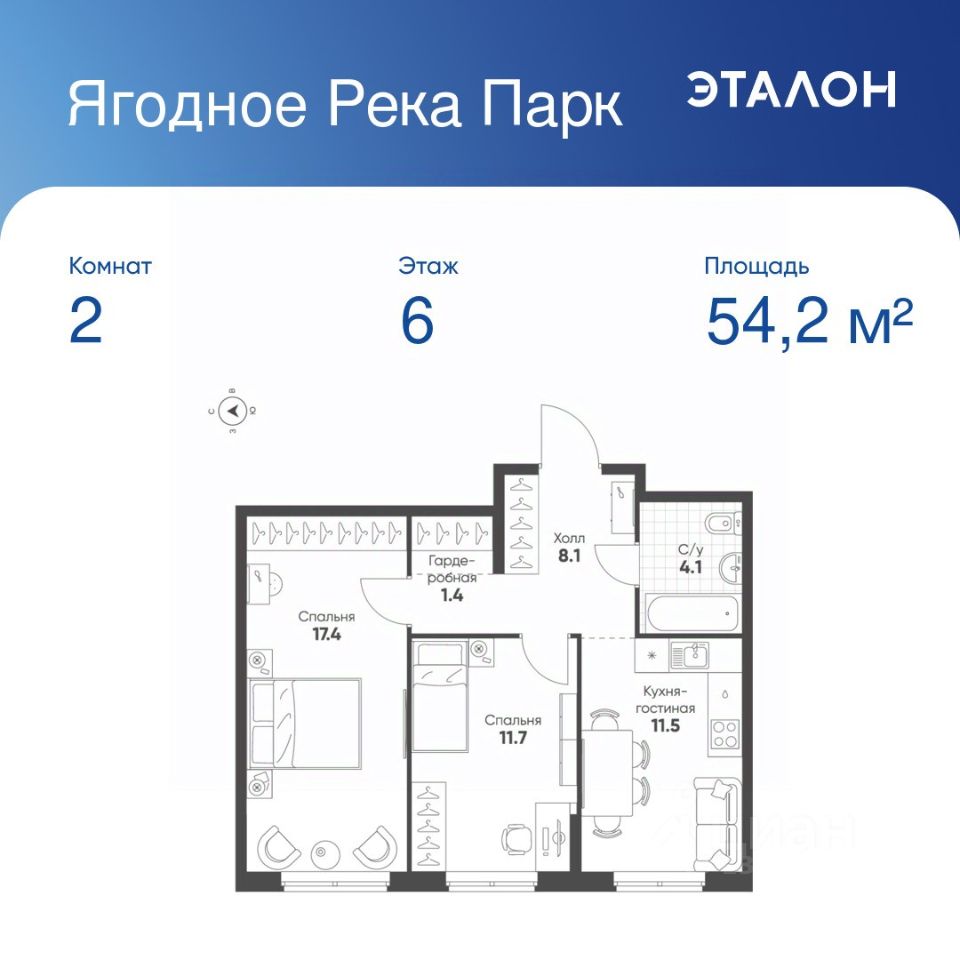 Общая площадь квартиры — 54.2 кв. м, этаж 6 из 12.