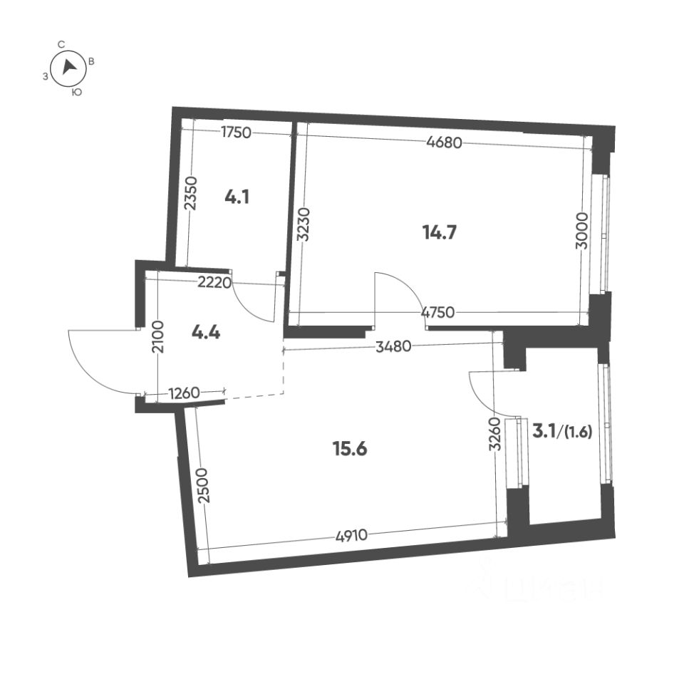 Продается 1-к квартира без отделки в ЖК "Ягодное Река Парк".