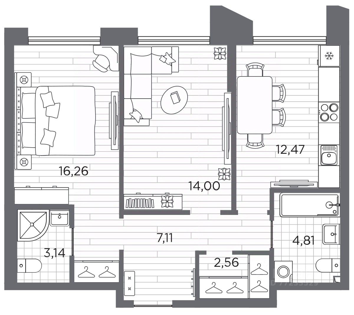 2-комн. квартира в ЖК "Галерная гавань" на 9 этаже. Квартира без отделки, полностью готова к ремонту. Общая площадь: 60.35 кв.м. Высота потолков 3.02 м.