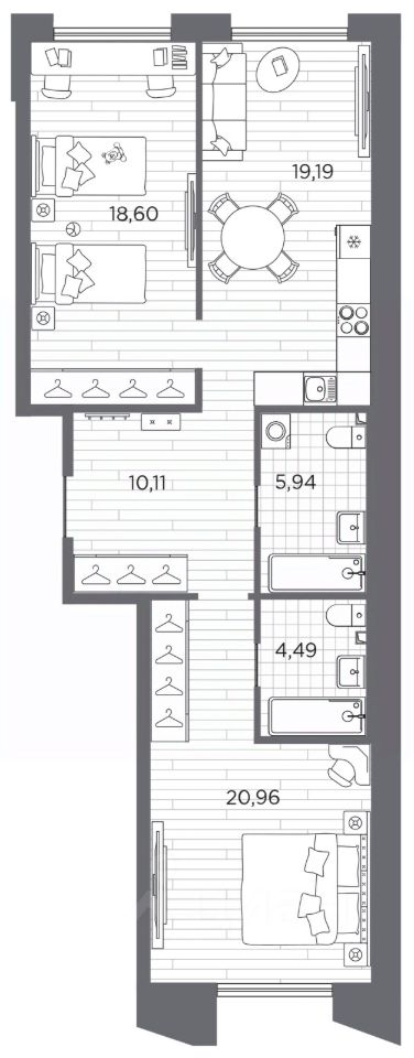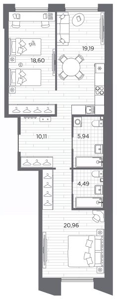 В продаже — широкий выбор планировок: от студий до просторных квартир с кухнями-гостиными и отдельными террасами. Почти 80% квартир — видовые: закатные и рассветные перспективы Финского залива, городские панорамы, светлый воздух больших окон. Высота потолков — до 3 метров.