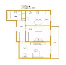 • Кухня 12,3 м² — комфортная зона для готовки и семейных обедов.