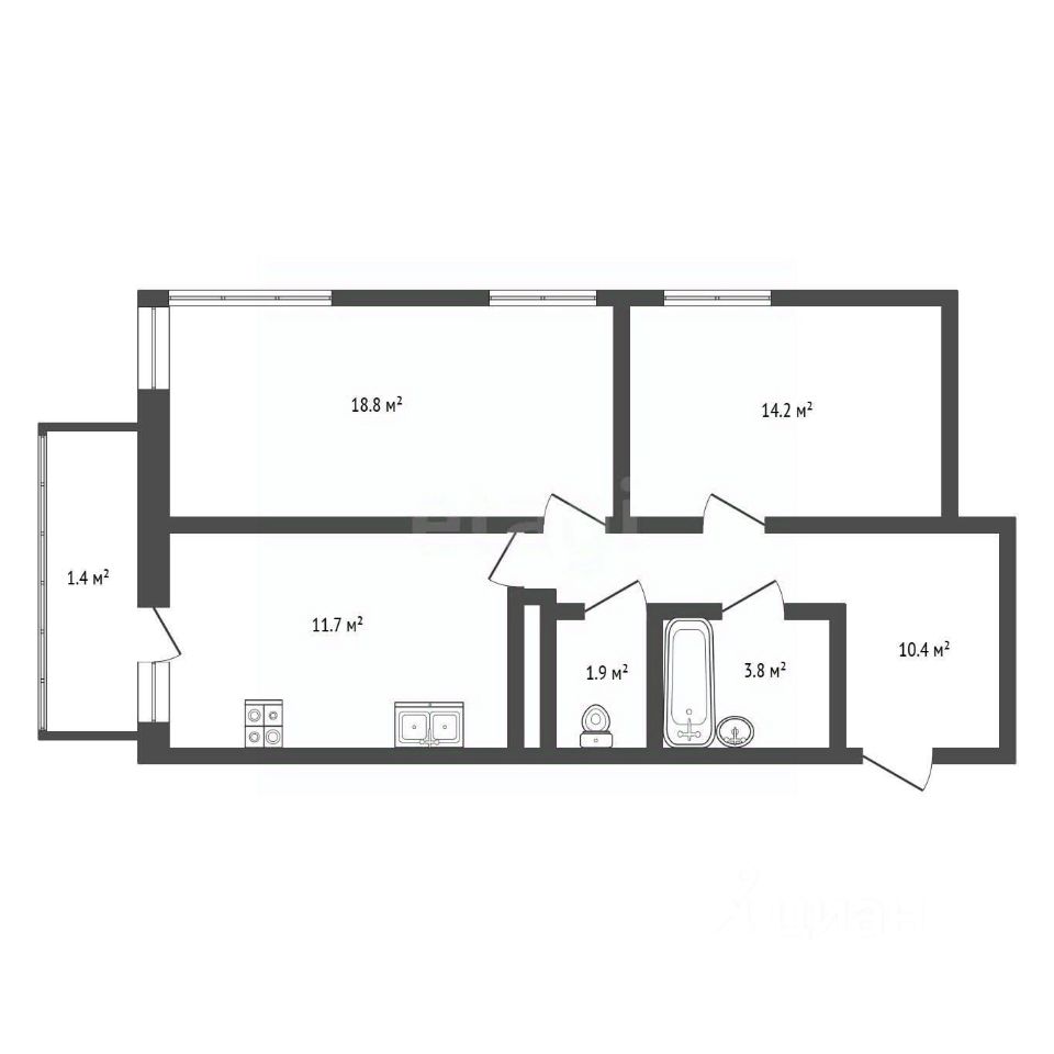 Балкон - 1,4 кв.м.