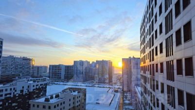 Вид на залив и кухня-гостиная 22.5 м2. Двушка нового формата в современной резиденции 2017 года.