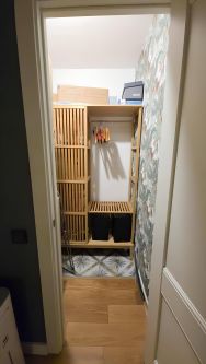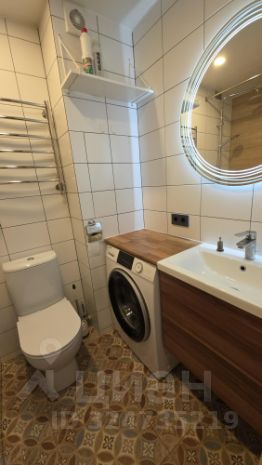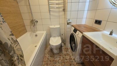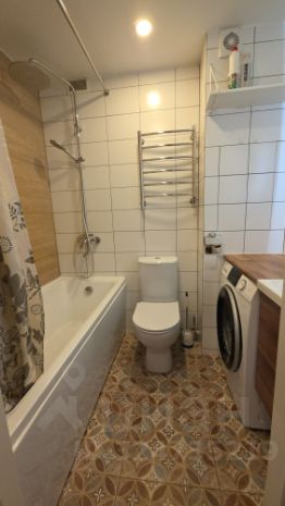 Просторный сан.узел, в котором размещается стиральная машина.