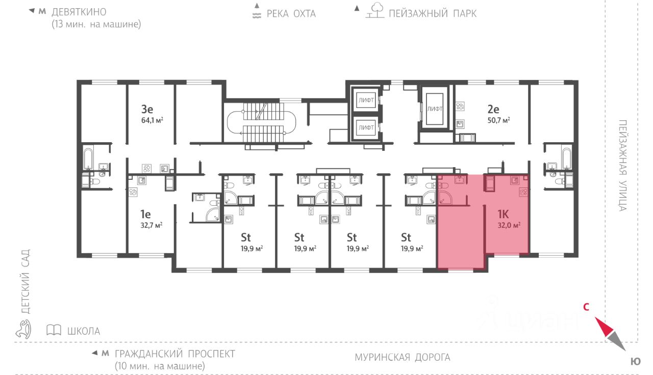• 20 минут на авто до станций "Гражданский проспект" и "Академическая";