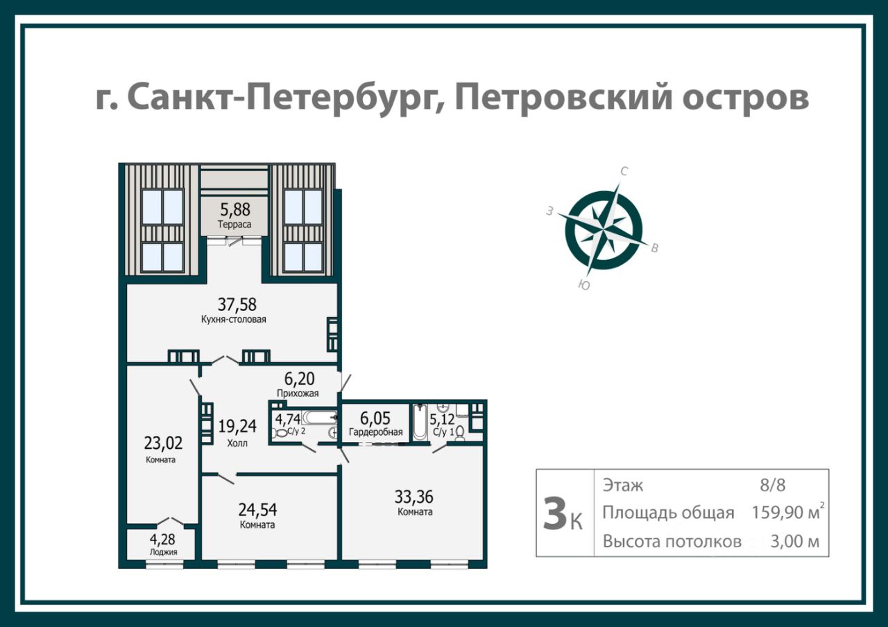Продается 3-х комнатная квартира в престижном районе Санкт-Петербурга. Впечатляющая планировка, в которой каждый метр будет функционировать для комфортной жизни. Мансардные окна, терраса, вид на воду, мастер спальня со своей гардеробной и сан.узлом, кухня-гостиная 37 метров!