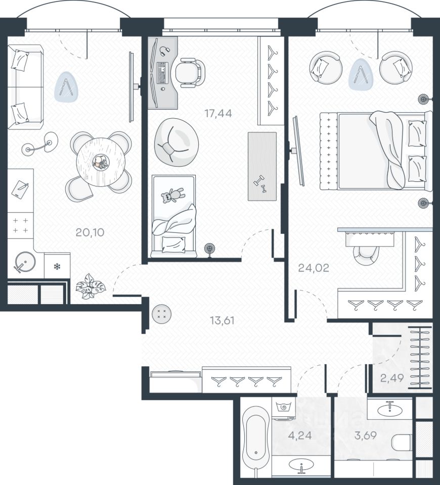 Продаётся 2-комнатная квартира в строящемся доме (Корпус 1), срок сдачи: III-кв. 2026, общей площадью 87.09 кв.м., на 6 этаже. Новый жилой комплекс "MONODOM ART" от застройщика "ГК Sun Development" расположен по адресу: Россия, Санкт-Петербург, Гаванская улица