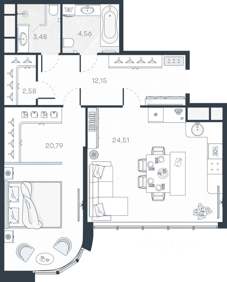Продаётся 1-комнатная квартира в строящемся доме (Корпус 1), срок сдачи: III-кв. 2026, общей площадью 68.07 кв.м., на 2 этаже. Новый жилой комплекс "MONODOM ART" от застройщика "ГК Sun Development" расположен по адресу: Россия, Санкт-Петербург, Гаванская улица