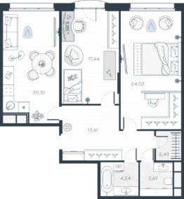 Продаётся 2-комнатная квартира в строящемся доме (Корпус 1), срок сдачи: III-кв. 2026, общей площадью 86.29 кв.м., на 5 этаже. Новый жилой комплекс "MONODOM ART" от застройщика "ГК Sun Development" расположен по адресу: Россия, Санкт-Петербург, Гаванская улица