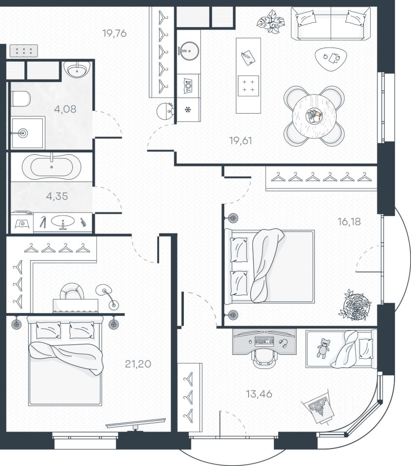 Продаётся 3-комнатная квартира в строящемся доме (Корпус 1), срок сдачи: III-кв. 2026, общей площадью 100.14 кв.м., на 6 этаже. Новый жилой комплекс "MONODOM ART" от застройщика "ГК Sun Development" расположен по адресу: Россия, Санкт-Петербург, Гаванская улица