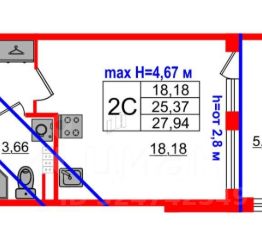 Студия площадью 25,37 кв.м (+5,13 Площадь лоджии) расположена на 4-ом этаже четырёхэтажного дома! В доме предусмотрен лифт. Высота потолка достигает 4,67 метров, что позволяет создать полноценный второй уровень для размещения уютной спальни или рабочего кабинета!