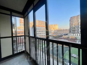 Общая площадь 37.8кв.м. с просторной кухней 11.8кв.м, с выходом на застекленную лоджию, комнатой 18.5кв.м и совмещенным санузлом 3.47кв.м. Квартира расположена на 4-ом этаже 13-ти этажного дома. Окна квартиры выходят на детскую площадку во двор (Юго-Восток).