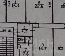 Общая площадь квартиры 69.1 кв. М., 3 изолированные комнаты площадью 16,7+ 16,4 + 22,4 кв. М., кухня 7.8 кв. М.