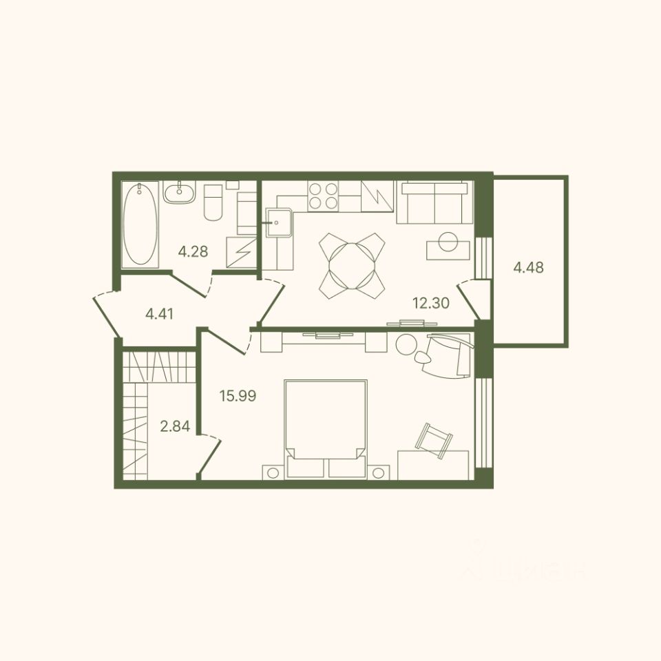 Общая площадь41,15 м²