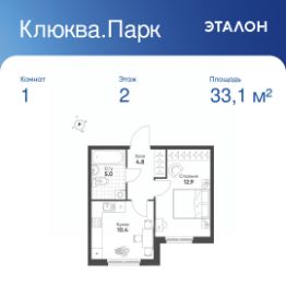 Общая площадь квартиры — 33.1 кв. м, этаж 2 из 12.