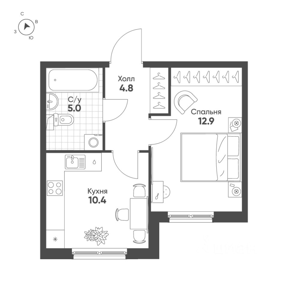 Продается 1-к квартира без отделки в ЖК "Клюква.Парк".