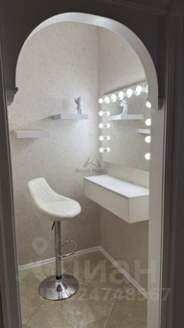 В коридоре расположен встроенный зеркальный шкаф, визуально расширяющий пространство, а гримерная комната станет настоящим подарком для тех, кто ценит свой внешний вид и уделяет внимание деталям.
