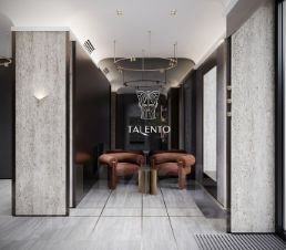 При разработке проекта архитектурная мастерская Юсупова гармонично вписала жилой дом в окружающую застройку, использовав краснокирпичную облицовку и элементы декора в стиле модерн. В оформлении проекта принимает участие и знаменитый художник с мировым именем Михаил Шемякин. Маскароны из его коллекции "Метафизические головы" будут украшать главный фасад Talento. А интерьеры дома разработаны по проекту Олега Клодта потомка петербургского скульптора времен царствования Николая I.