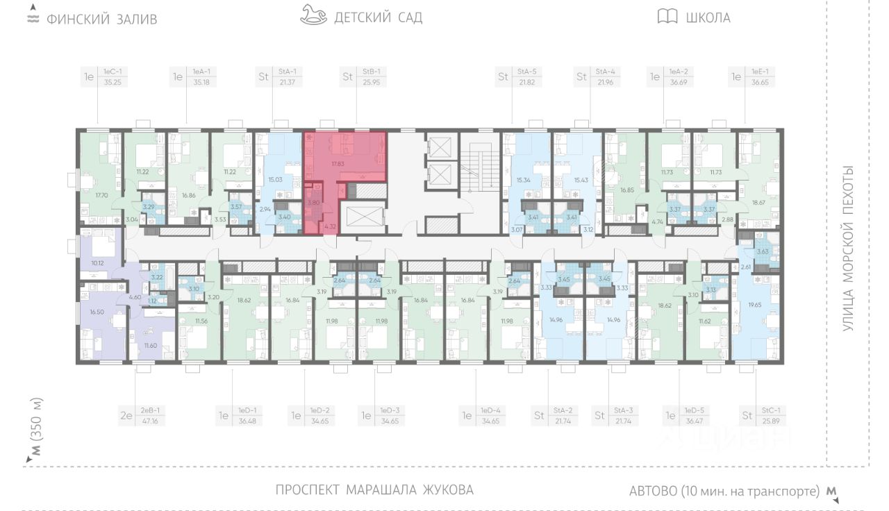 Продается студия в ЖК "Морская миля" на 7 этаже. Общая площадь составляет 25.95 кв. м. Квартира с чистовой отделкой. Жилой комплекс "Морская миля" располагается по адресу Санкт-Петербург, Красносельский.