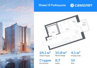 Строим кварталы для жизни с заботой о будущем. Предлагается квартира студия комфорт-класса 24,09 кв.м в корпусе 6,7 на 10 этаже, в ЖК "Живи! В Рыбацком"