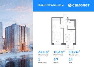 Строим кварталы для жизни с заботой о будущем. Предлагается 1-комнатная квартира комфорт-класса 34,16 кв.м в корпусе 6,7 на 14 этаже, в ЖК "Живи! В Рыбацком"