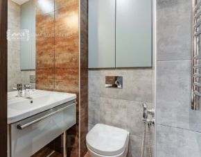 Два санузла, две гардеробные и отлично организованные места хранения. Жилая зона состоит из 2-х спален.