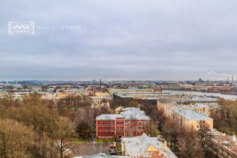 Всю квартиру объединяет огромная лоджия, с которой открывается панорамный вид на Неву, крыши, Смольный собор, парки и мосты.