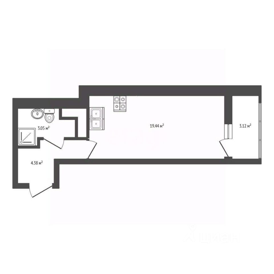 - мeтpaж 26,3 кв м, c балкoнoм 28,5м, пoтолок 2,75м